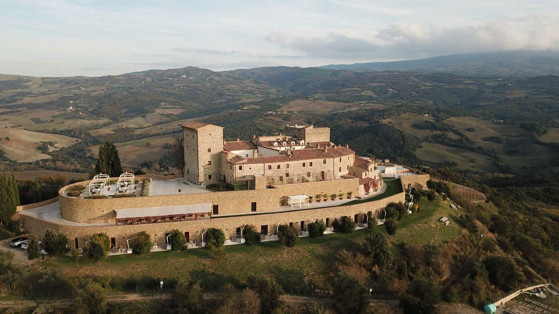 Guests can also engage in truffle hunting, Vespa tours of the valley, hot air balloon rides over the vineyards, and helicopter tours of the Tuscan coastline.