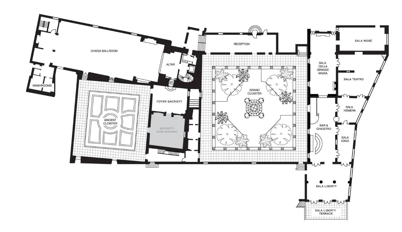 San Domenico Palace offers several event spaces with varying capacities, as you can see on the below site map:
